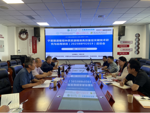 2025年8月29日上午,宁夏回族自治区重点研发计划项目——“宁夏酿酒葡萄种质资源精准高效鉴定关键技术研究与应用(项目编号:2025BBF02019)”启动会在宁夏大学朔方校区256会议室顺利召开。本次会议邀请了宁夏大学科学技术研究院副处长卜晓燕,宁夏贺兰山东麓葡萄酒产业园区管委会赵世华研究员,宁夏农林科学院陈卫平研究员,以及宁夏气象科学研究所张晓煜研究员,与会专家围绕项目的实施方案与管理机制展开质询与点评。